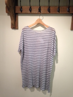 ボートネックの胸元と肩口が無地なのですっきりとした印象に。