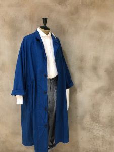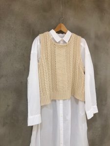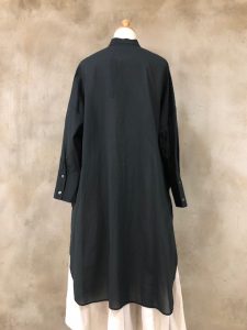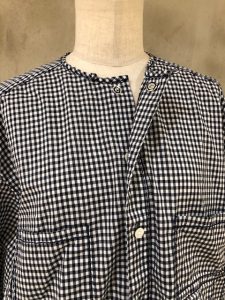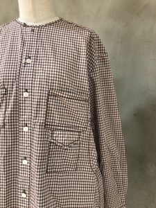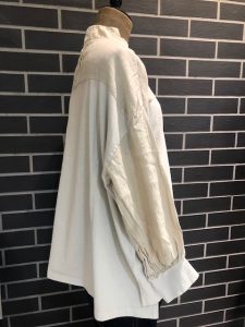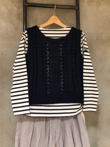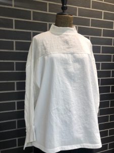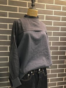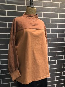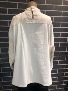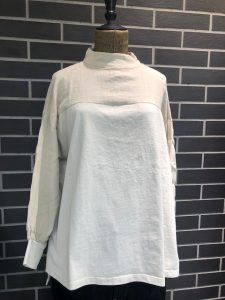 前後ヨーク部分と袖にリネンの布帛で切替を施したプルオーバー。