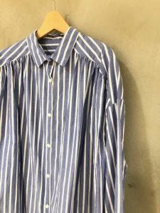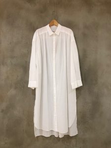リネン素材の袖にはギャザーをよせてふんわり女性らしい印象に。