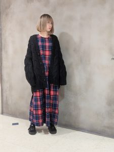 ケーブル編みのカーディガンと合わせたコーディネート!