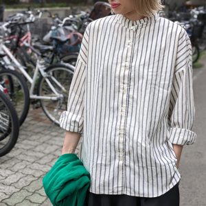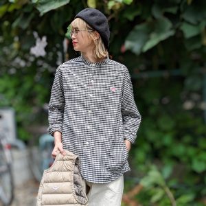チェックバンドカラーシャツ