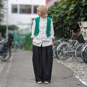 秋冬らしいタートルネックセーターにはボタンスタイル💃