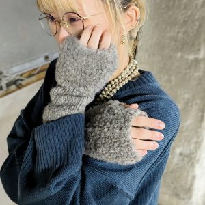 袖口広めのトップスにハンドウォーマーを合わせるだけで、暖かい印象に☺